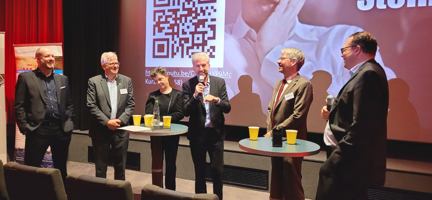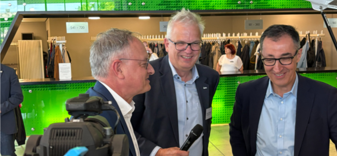 Ministerpräsident Kretschmann und Umweltministerin Walker gemeinsam mit Thomas Beißwenger und Dr. Dominik von Achten, Vorstandsvorsitzender von Heidelberg Materials, beim Ressourceneffizienz- und Kreislaufwirtschaftskongress BW am 16.10.2024.