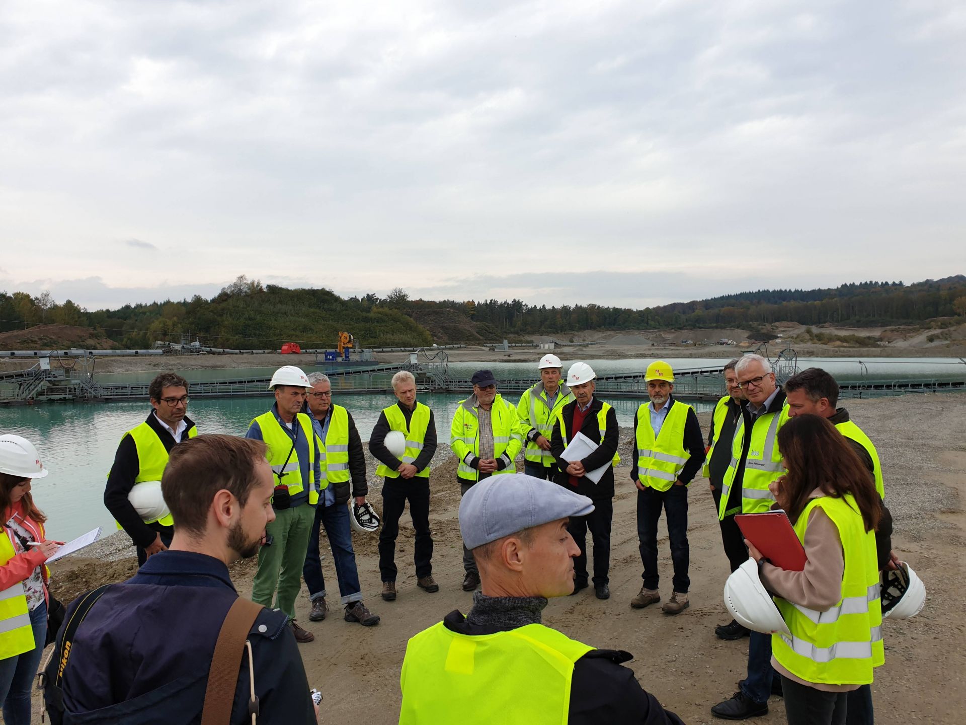 Einer der zahlreichen Dialogtermine des ISTE: Die Konstanzer Landtagsabgeordnete Nese Erikli und Umweltstaatssekretär Dr. Andre Baumann (3.v.l) informieren sich beim Ehrenpräsident des ISTE, Dr. Rolf Mohr (4.v.l) über nachhaltige Rohstoffgewinnung und Artenschutz während des Abbaus.
