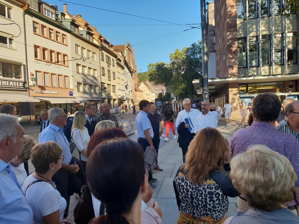 ISTE-Präsenz bei der Landesdelegiertenkonferenz der Grünen in Sindelfingen im Herbst 2019: Diskussion und Fotoshooting mit dem Bürgermeister von Maselheim Elmar Braun (links) sowie mit dem Fraktionsvorsitzenden der Grünen Andreas Schwarz MdL (Mitte) und Thomas Hentschel MdL (Mitte und rechts)