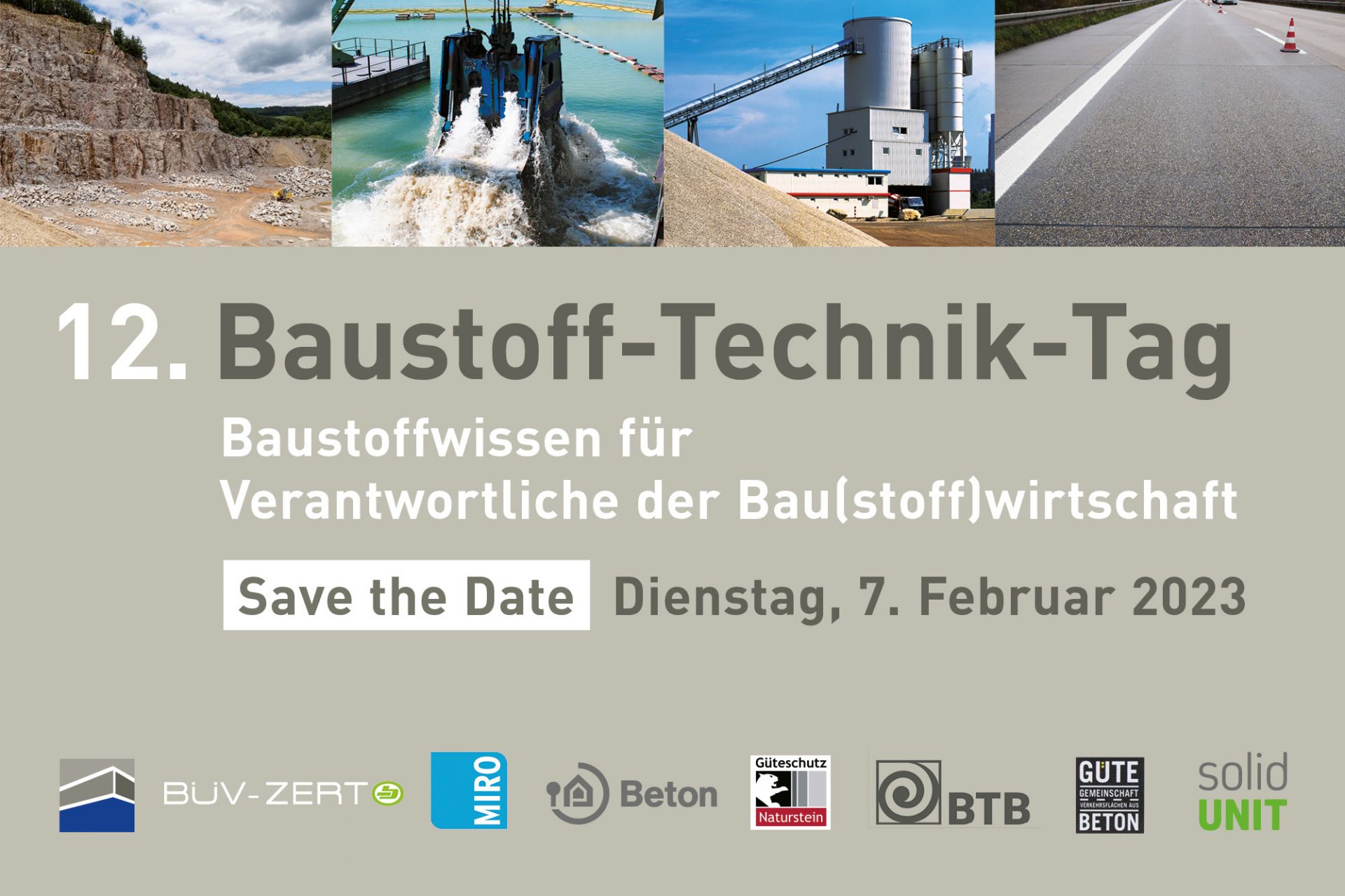 Save the Date: 12. Baustoff-Technik-Tag |  | Nähere Informationen zum Programm und zur Anmeldung folgen. Wir freuen uns schon jetzt auf einen spannenden und inspirierenden Tag mit Ihnen in der Filharmonie in Filderstadt! » mehr