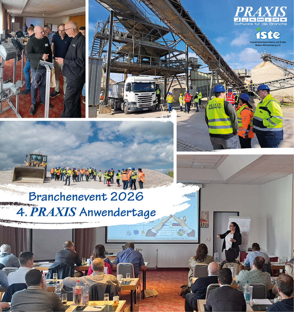 Die PRAXIS EDV-Betriebswirtschaft- und Software-Entwicklung AG lädt in Kooperation mit dem Industrieverband Steine und Erden Baden-Württemberg e.V. (ISTE) zur vierten Fachtagung rund um Prozessautomatisierung und Digitalisierung ein.