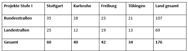 Eine detaillierte Übersicht über die Brücken in Stufe I erhalten Sie bei den zuständigen Regierungspräsidien (siehe unten).